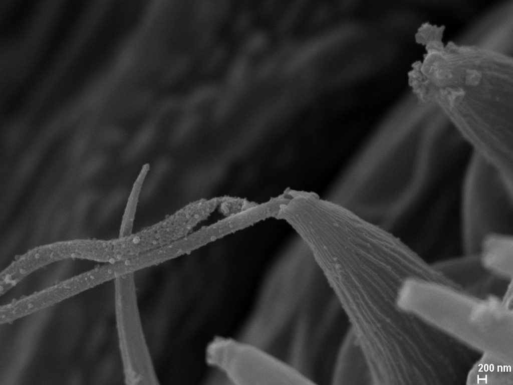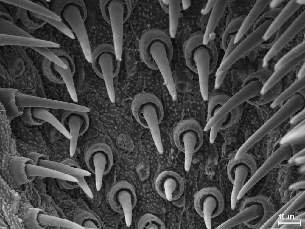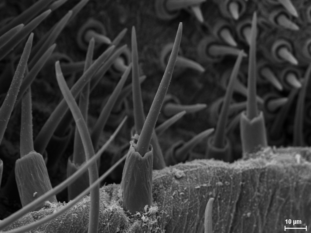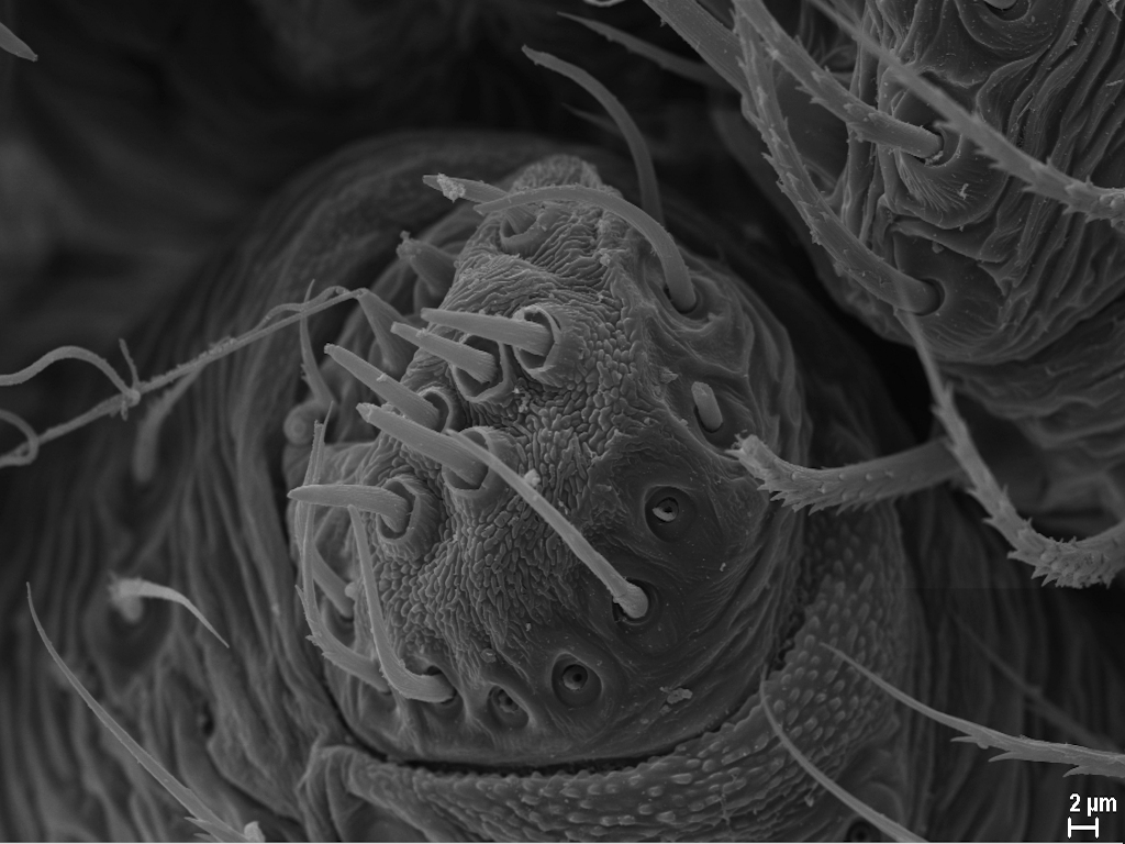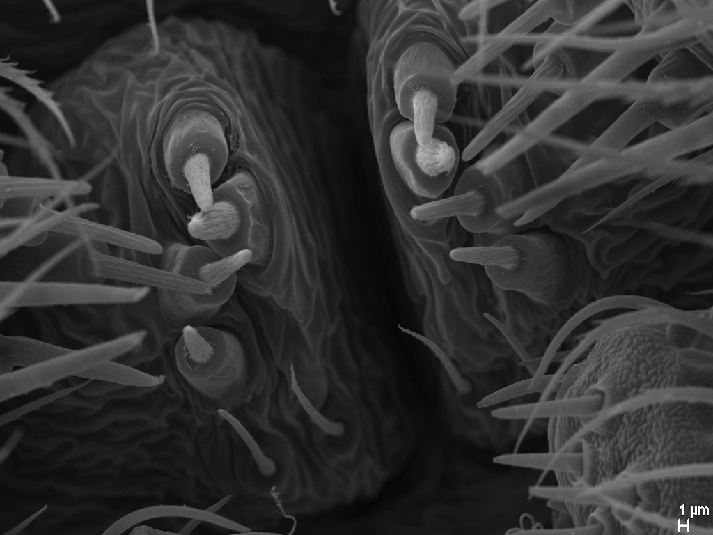 Der Spinnapparat der Spinnen besteht aus den äußeren Spinnwarzen sowie den inneren Spinndrüsen und dienen zur Produktion von Spinnenseide, die u. a. für den Bau von Netzen und Kokons, zum Beutefang oder zur Verbreitung („Ballooning“) verwendet wird. In meinem Master-Projekt befasse ich mich mit dem Aufbau des Spinnapparates verschiedener Stadien der Wespenspinne Argiope bruennichi. Die Wespenspinne ist paläarktisch verbreitet und breitet sich nach Norden aus. Da sich die Populationen von Estland, Südfrankreich und den Azoren in der Ballooningaktivität unterscheiden, untersuche ich ob das unterschiedliche Verhalten mit morphologischen Änderungen des Spinnapparats einhergeht. Ich untersuche adulte Tiere sowie juvenile Entwicklungsstadien verschiedener Herkunft. Die Untersuchung des Spinnapparates erfolgt mit Hilfe der Rasterelektronenmikroskopie und histologischer Methoden (Semi-Dünnschnitte und Paraffinschnitte).